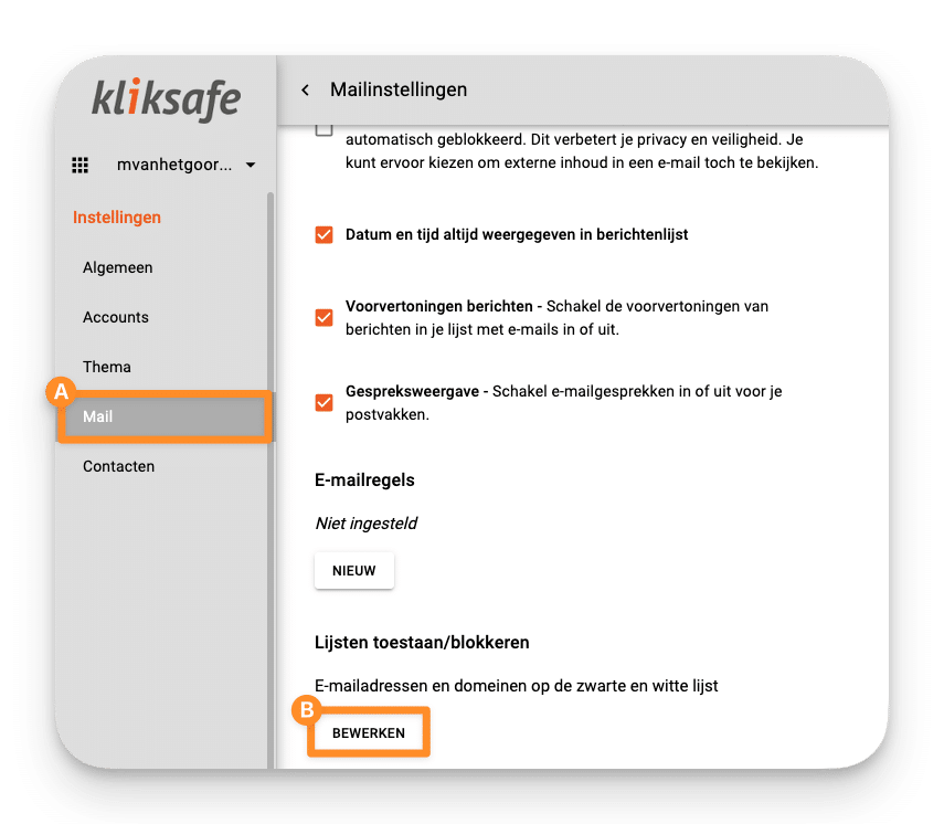 Hoe verwijder ik een Kliksafe e-mailadres van mijn Apple Mail app?