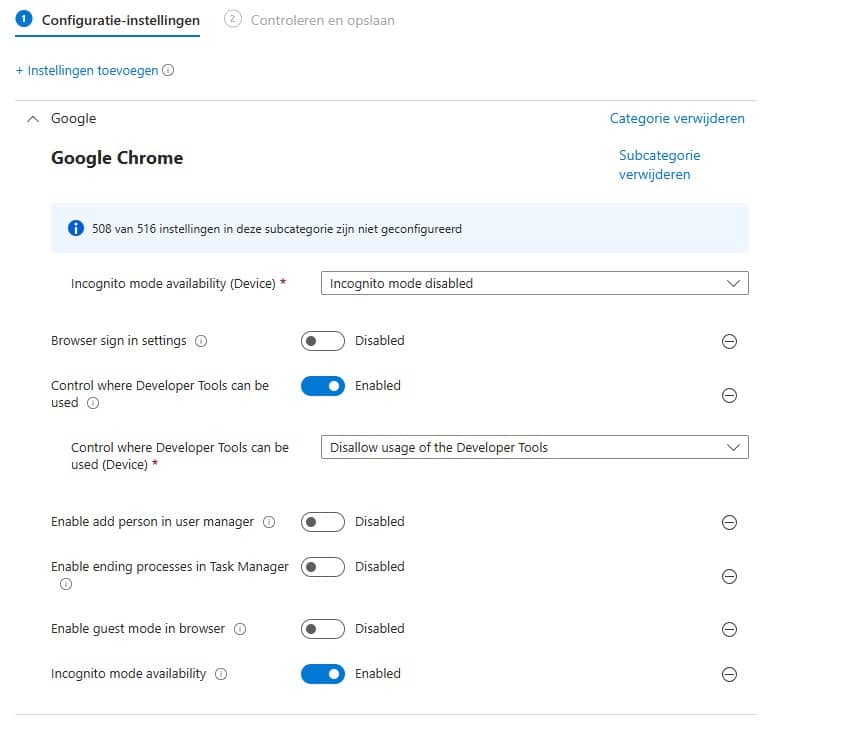 Voor de cloudfilter extensie op Windows zijn nog diverse belangrijke browserspecifieke instellingen nodig in te regelen in Microsoft Intune. Let op, dit moet apart ingesteld worden per browsertype. Kies de browser