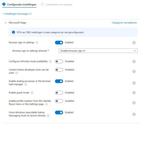 – In de Microsoft Edge categorie vink de volgende items aan en zorg dat ze zo ingesteld staan: